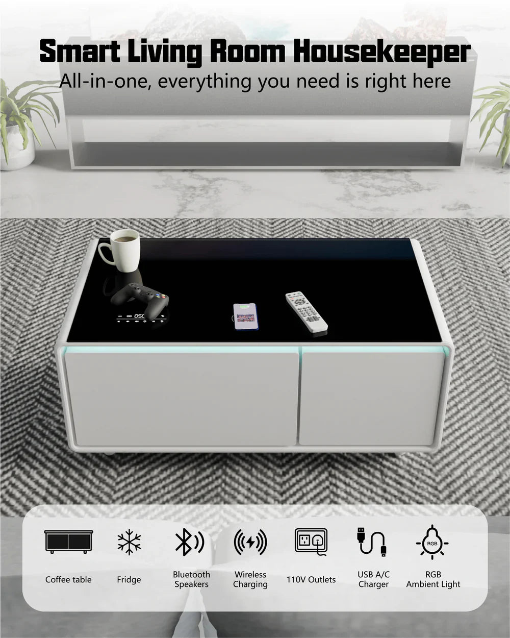 Viorix LX80 Pro Smart Coffee Table with Fridge